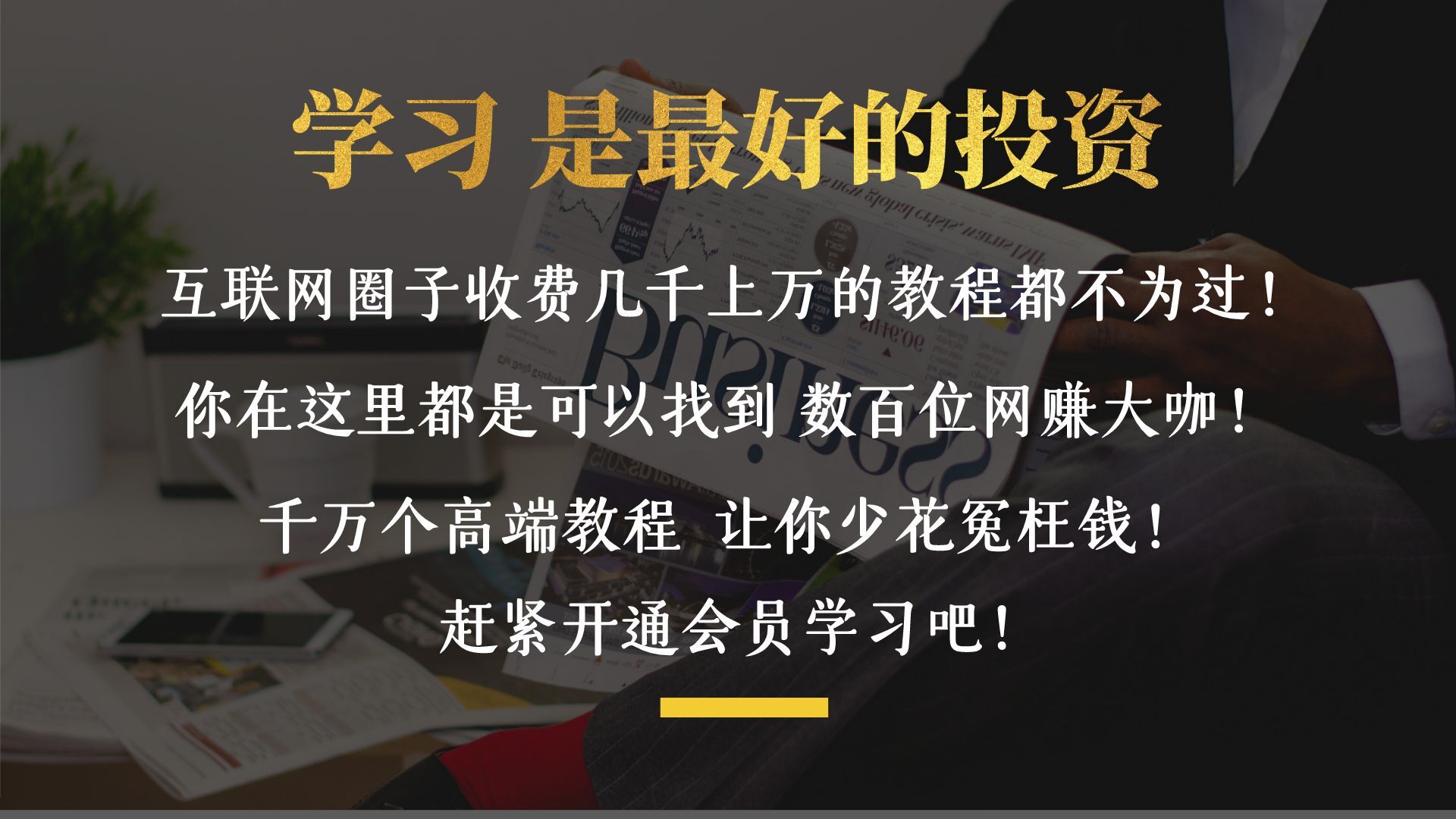 投资大脑是21世纪最好的投资,比你有钱的人可能比你更努力,网络上创业赚钱不分背景,只分技术和努力,知识是永不过期的自有财富,充实了自己的脑袋,才能鼓起你的口袋!