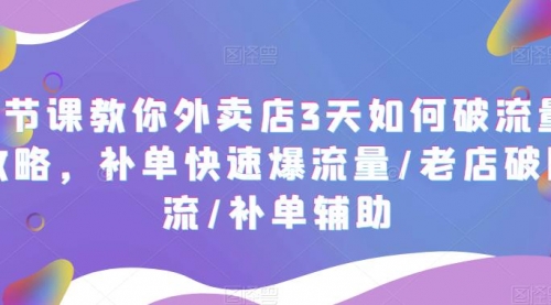 7节课教你外卖店3天如何破流量攻略,补单快速爆流量/老店破限流/补单辅助