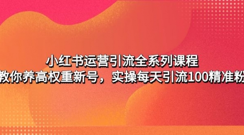 小红书运营引流全系列课程:教你养高权重新号,实操每天引流100精准粉